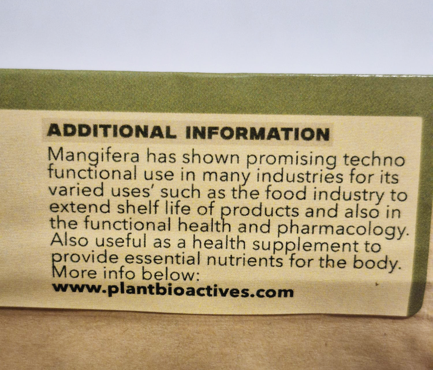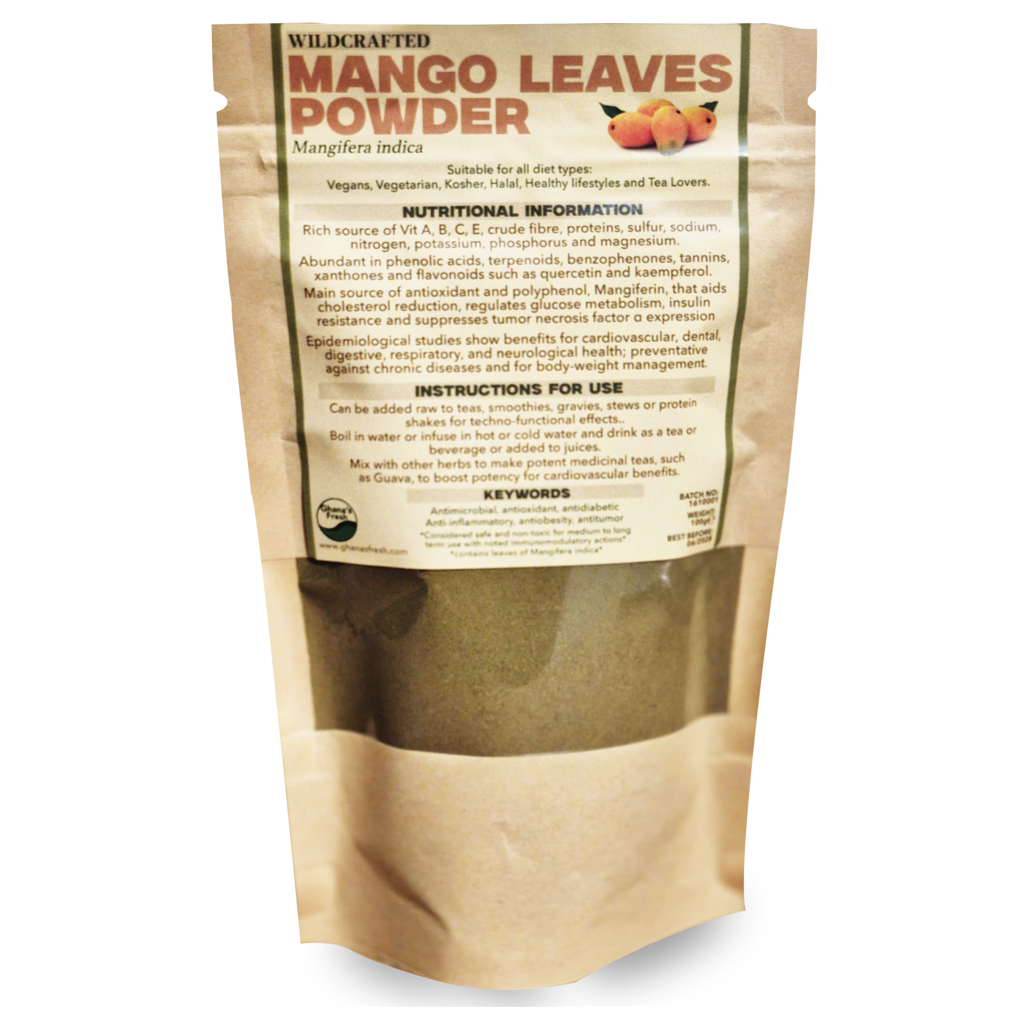 Main source of antioxidant and polyphenol, Mangiferin, that aids cholesterol reduction, regulates glucose metabolism, insulin resistance and suppresses tumor necrosis factor α expression.